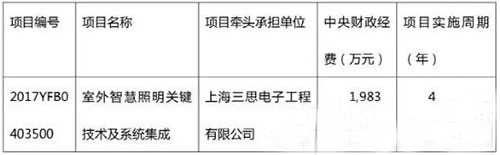 ? 2017年8月28日,國家科技部與上海三思電子工程有限公司簽署了《室外智慧照明關(guān)鍵技術(shù)及系統(tǒng)集成任務(wù)書》。