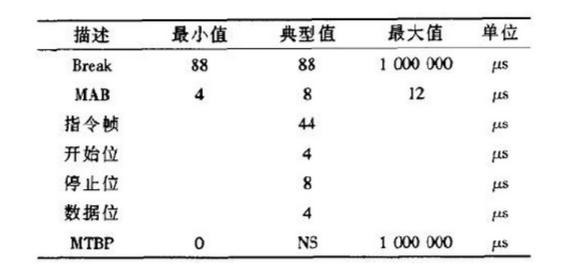 ? ? ??表1是DMX512信息包的定時表,表中NS意為Nm Spec~ed,寬度沒有嚴格限制,由程序設計者自行決定,比如MTBP的寬度可以介于0~1秒之間。