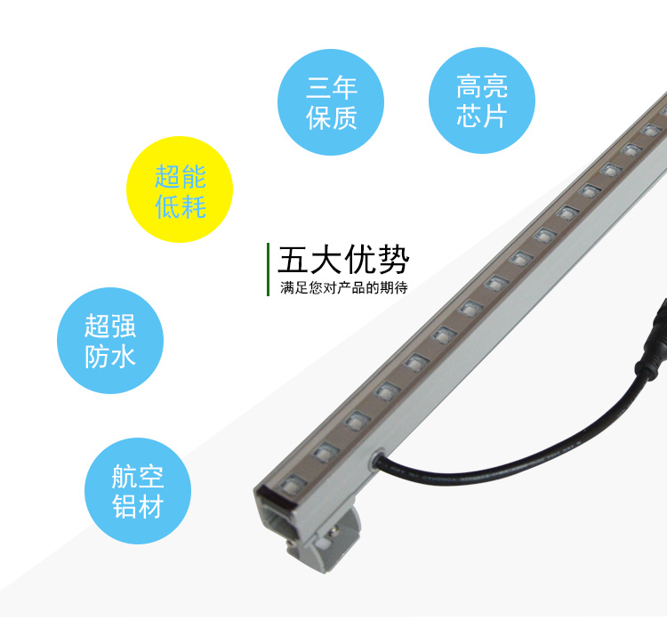 3、LED大功率洗墻燈光源采用進(jìn)口超高亮大功率LED燈珠,內(nèi)置恒流驅(qū)動(dòng)電源,確保燈具性能穩(wěn)定。